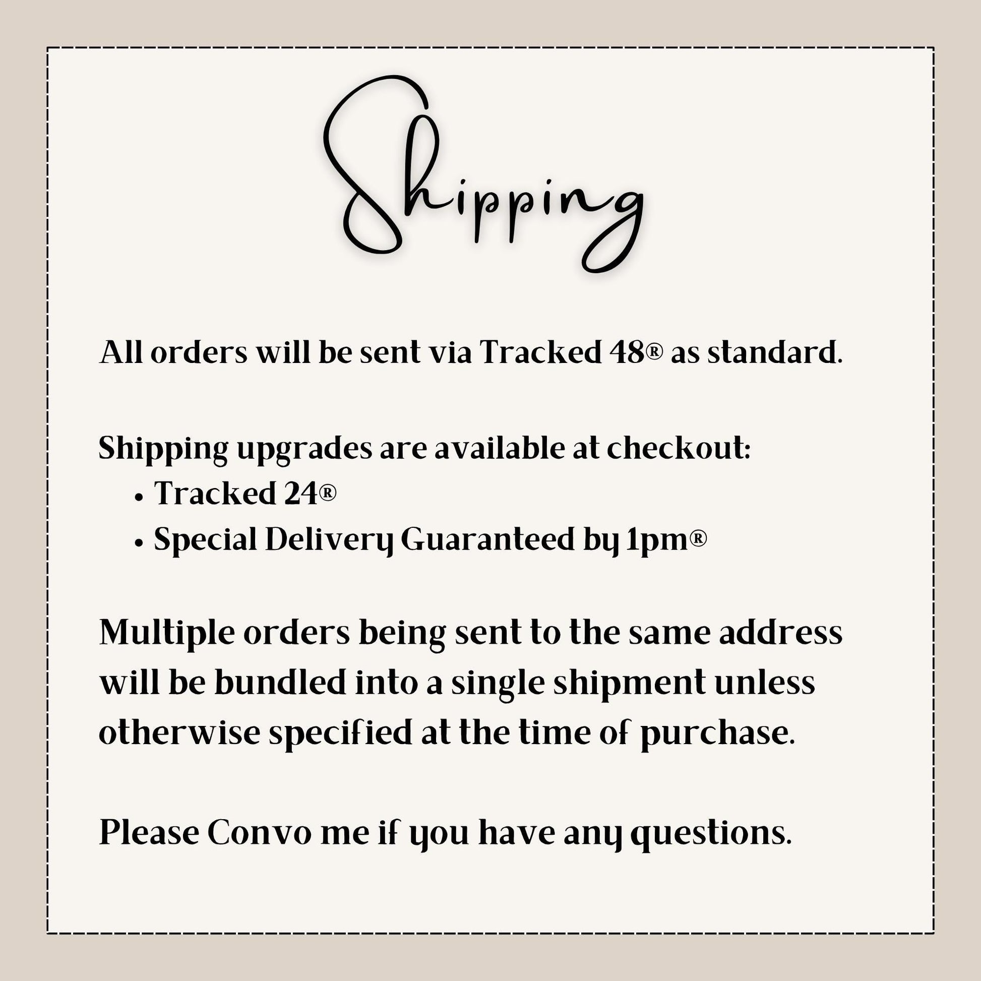 Each order comes with an info notelet included (one per order for multiple of same bracelets).