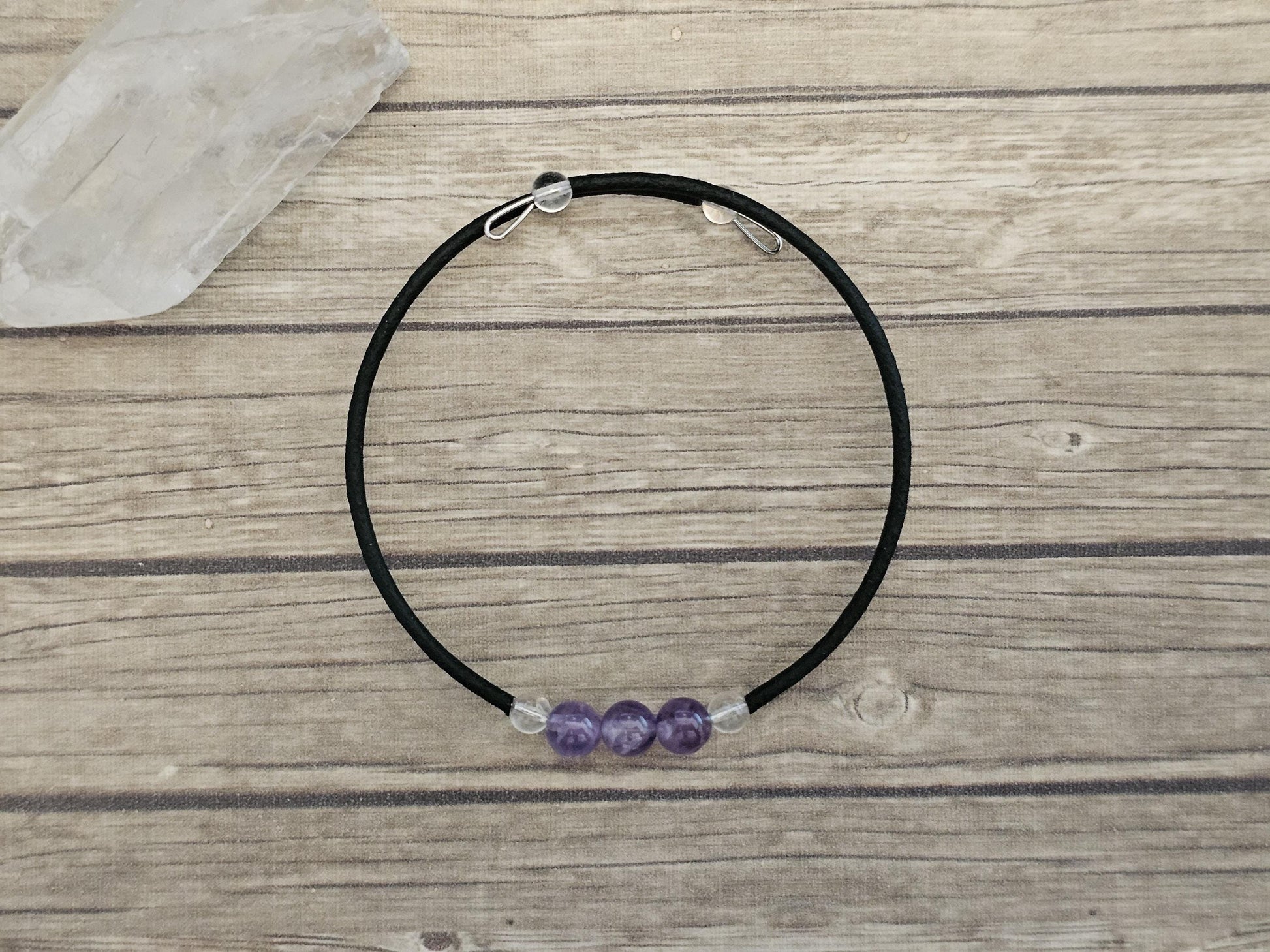 Featuring Amethyst (6mm) and Clear Quartz (4mm) accent beads.