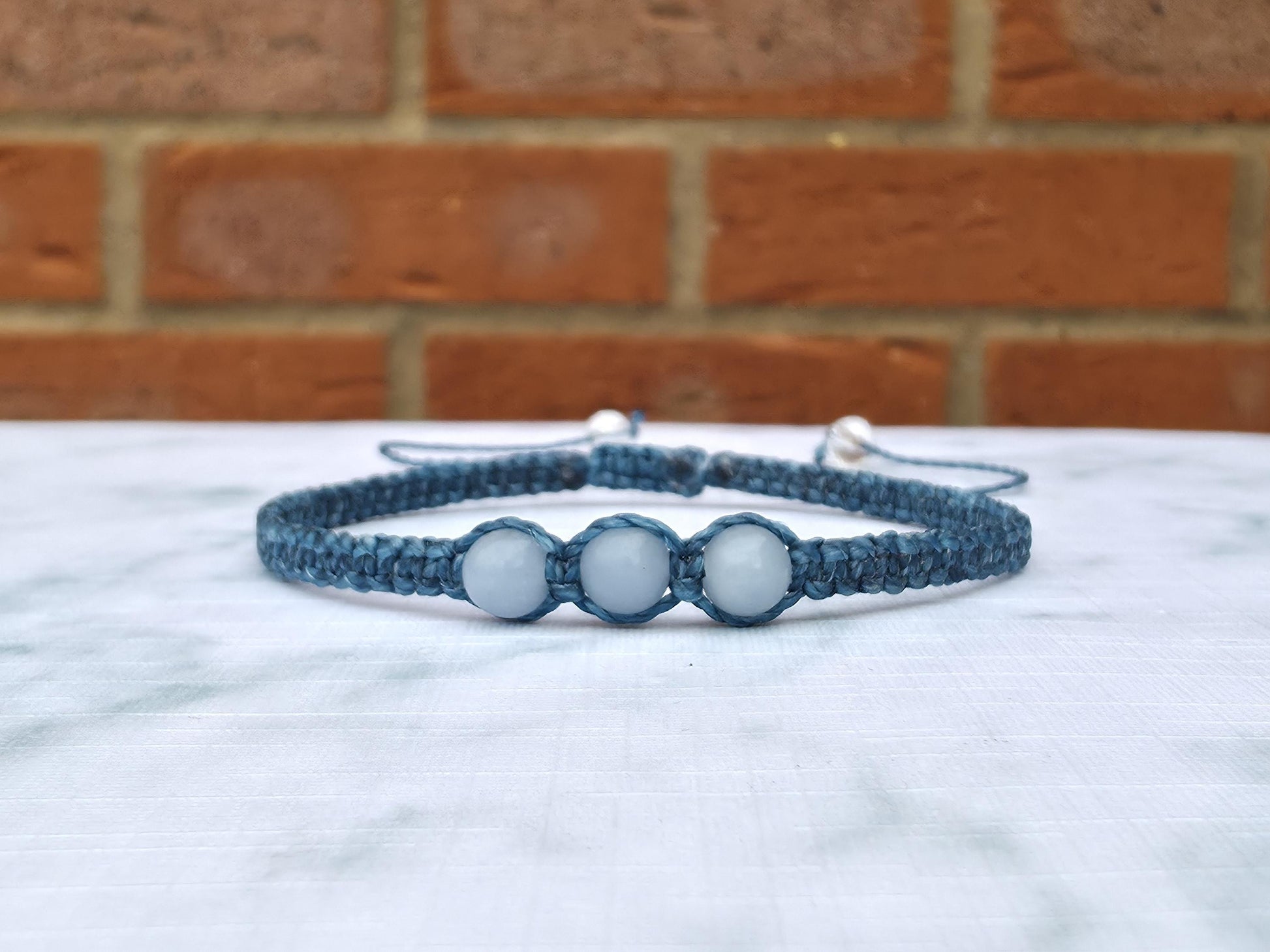 waxed Brazilian cord • Angelite round beads • faceted glass beads • sliding knot closure